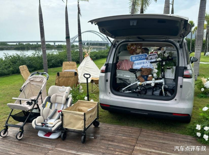 对于MPV车型来说,强大的载物能力同样至关重要。在此方面,星光730延续了五菱一贯的优良传统,载物能力相当出色。其中该车第三排座椅可向前翻折,形成一个进深可观、地板平整的行李空间,容积最大可扩展至1202L。实测可同时容纳2个20寸登机箱+4个28寸大号行李箱+一辆折叠自行车。此外,星光730的尾门开口宽度达到1164mm,无论是举家出行,还是偶尔拉货,它都能应对自如,真正做到了宜商又宜家。